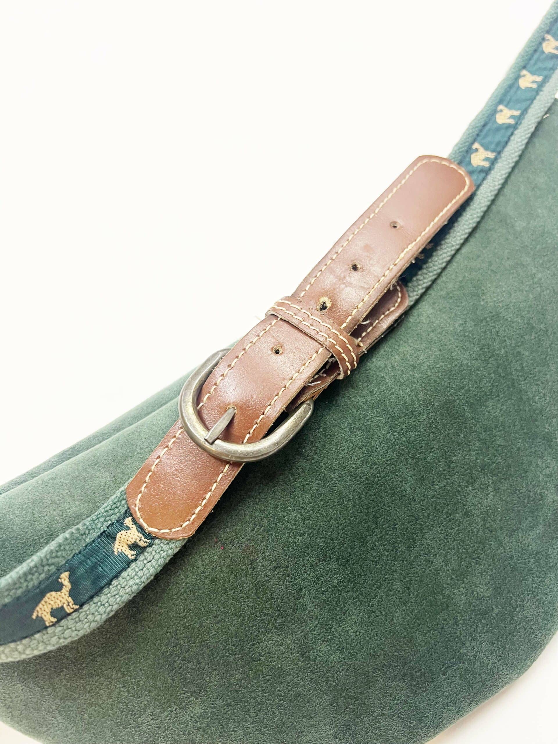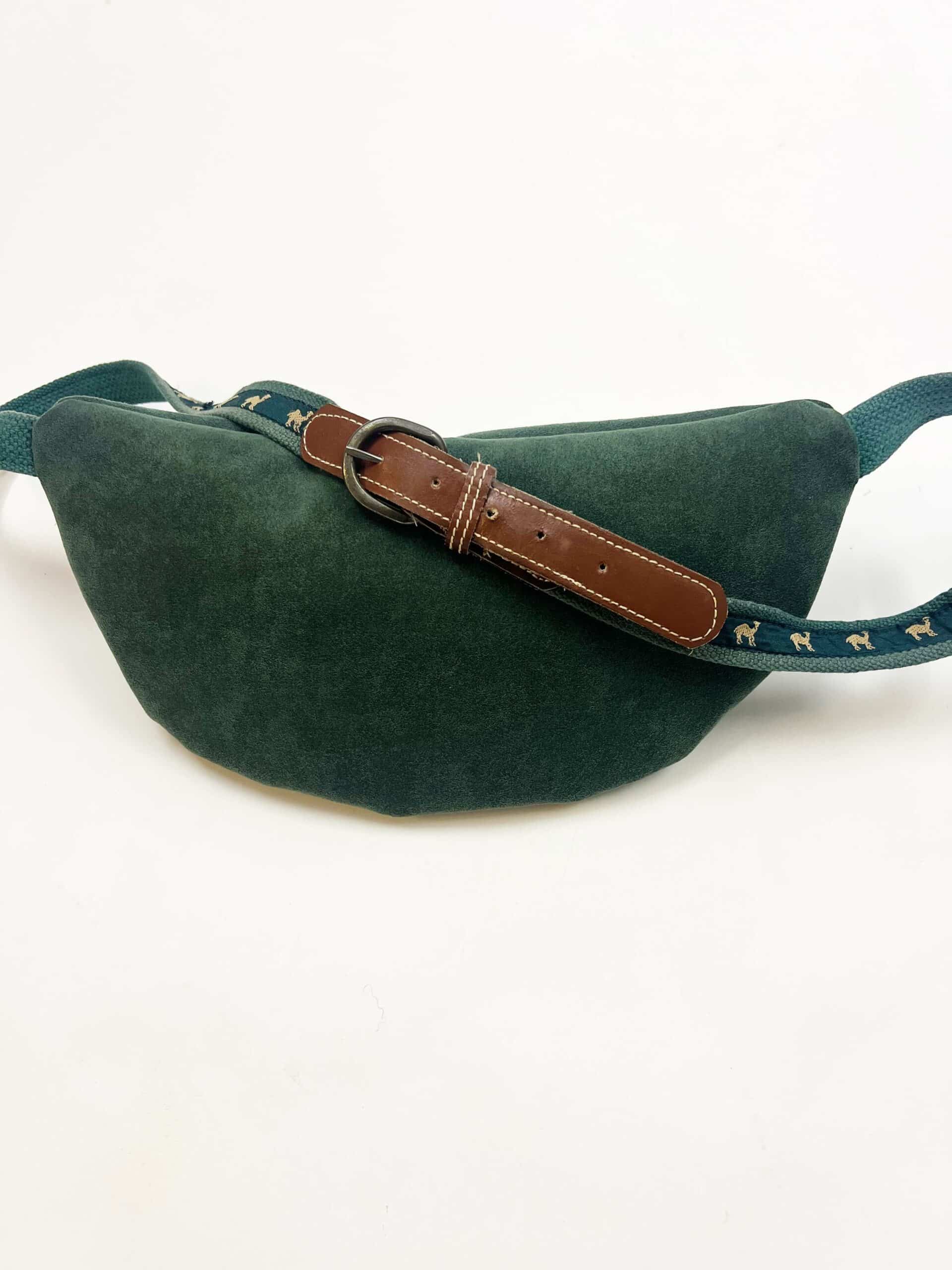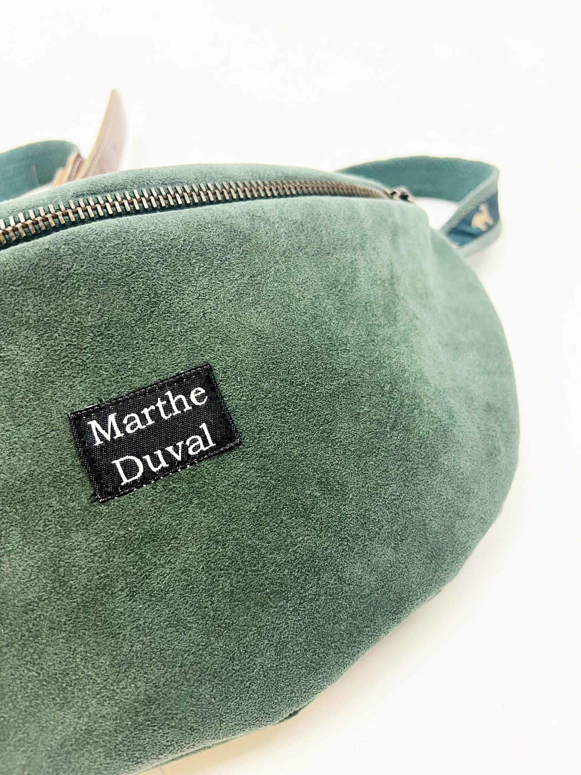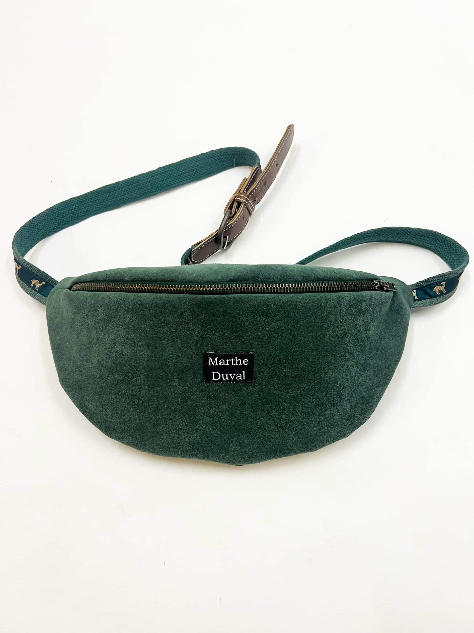 Banane XL en suédine verte, entièrement doublée et 100% surcyclée.