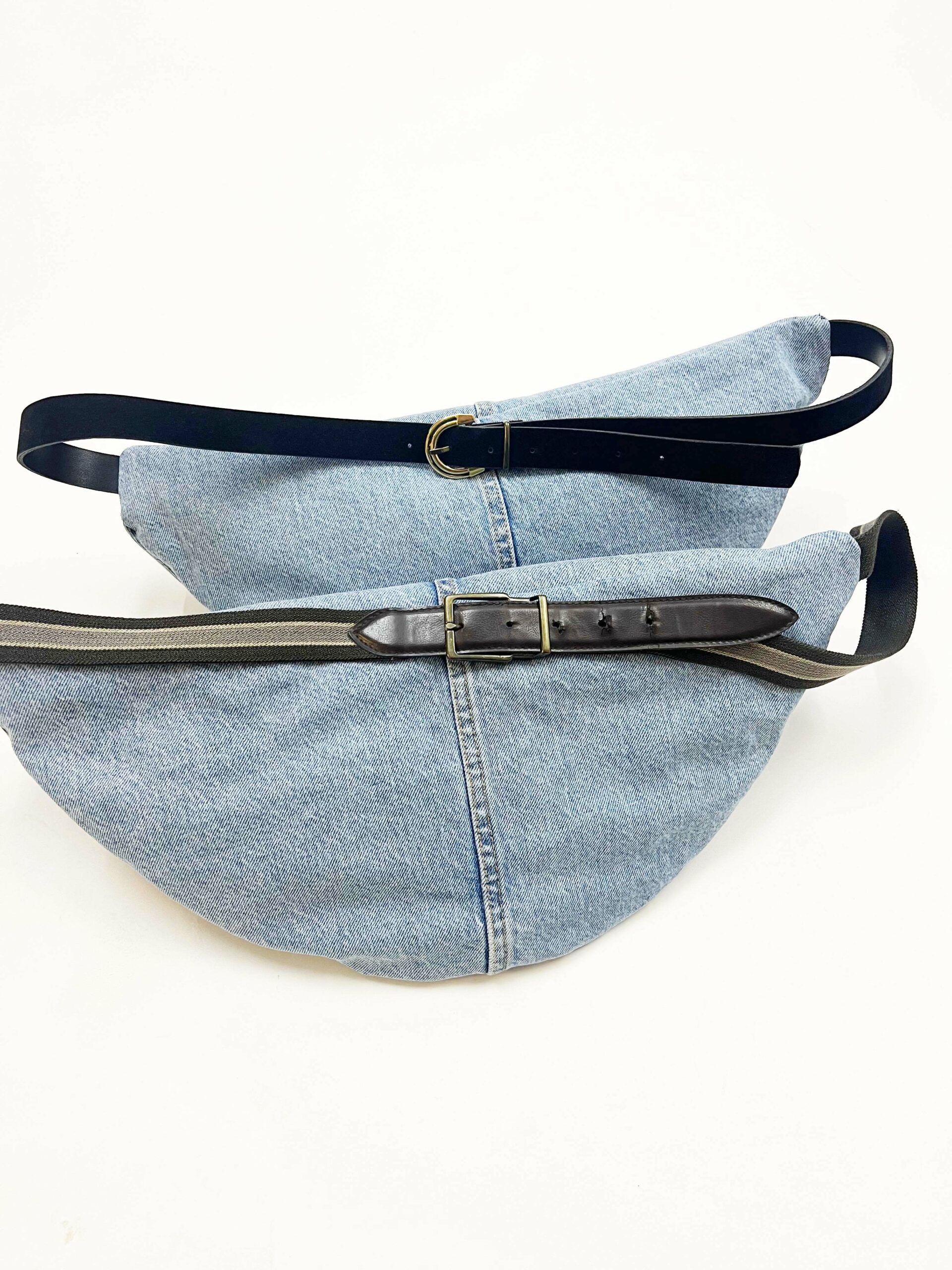Banane XL en denim, entièrement doublée et 100% surcyclée.