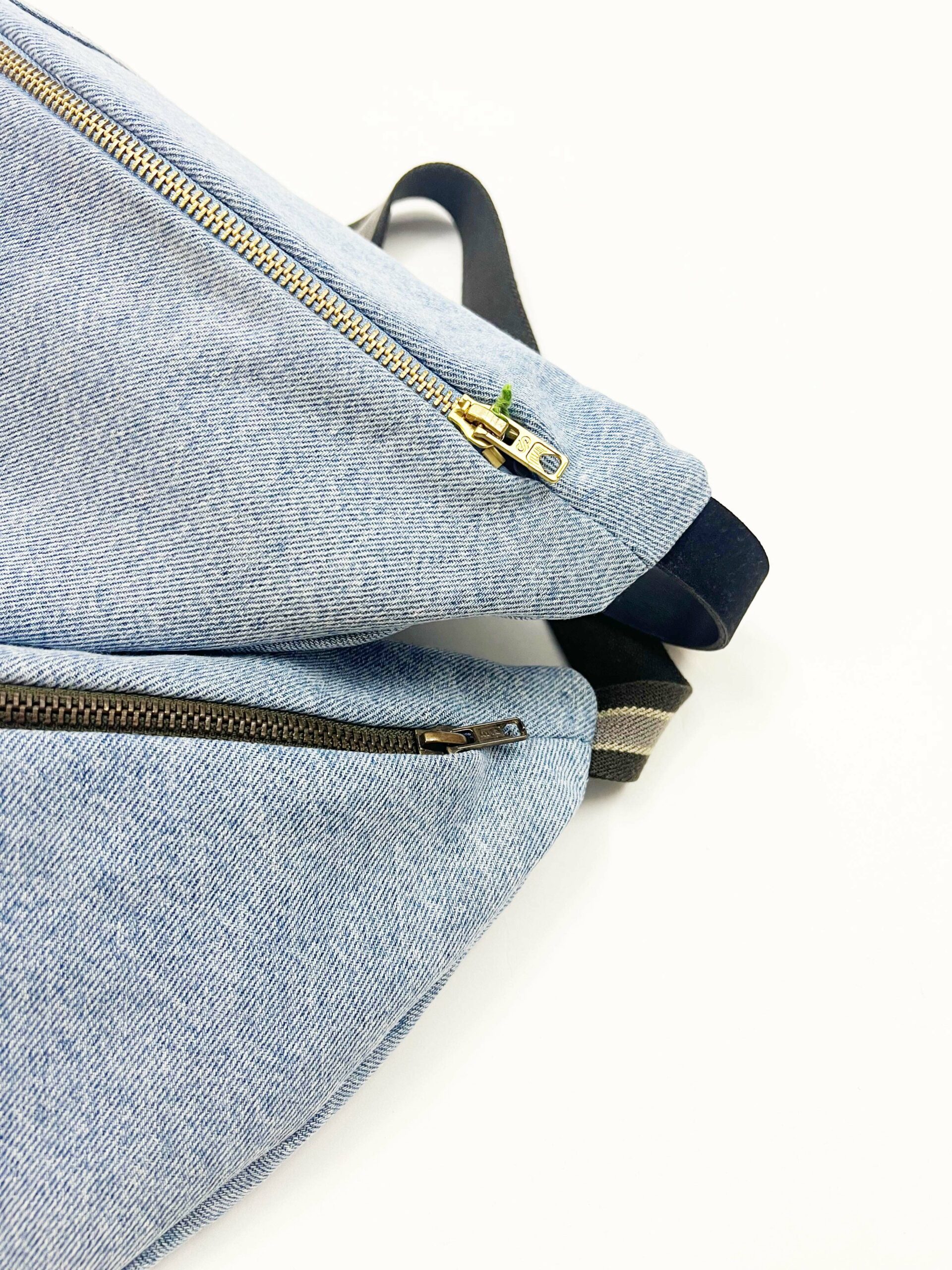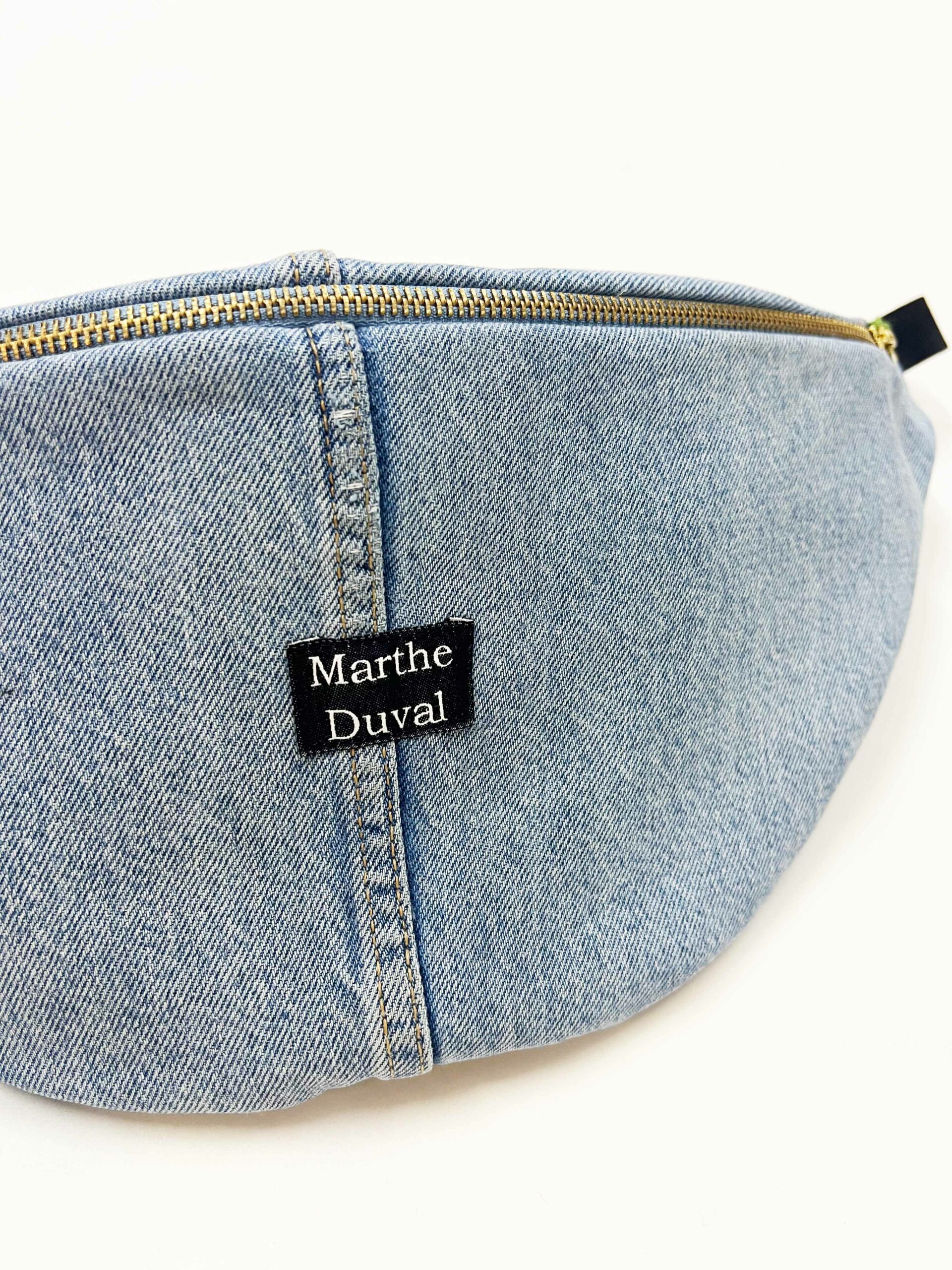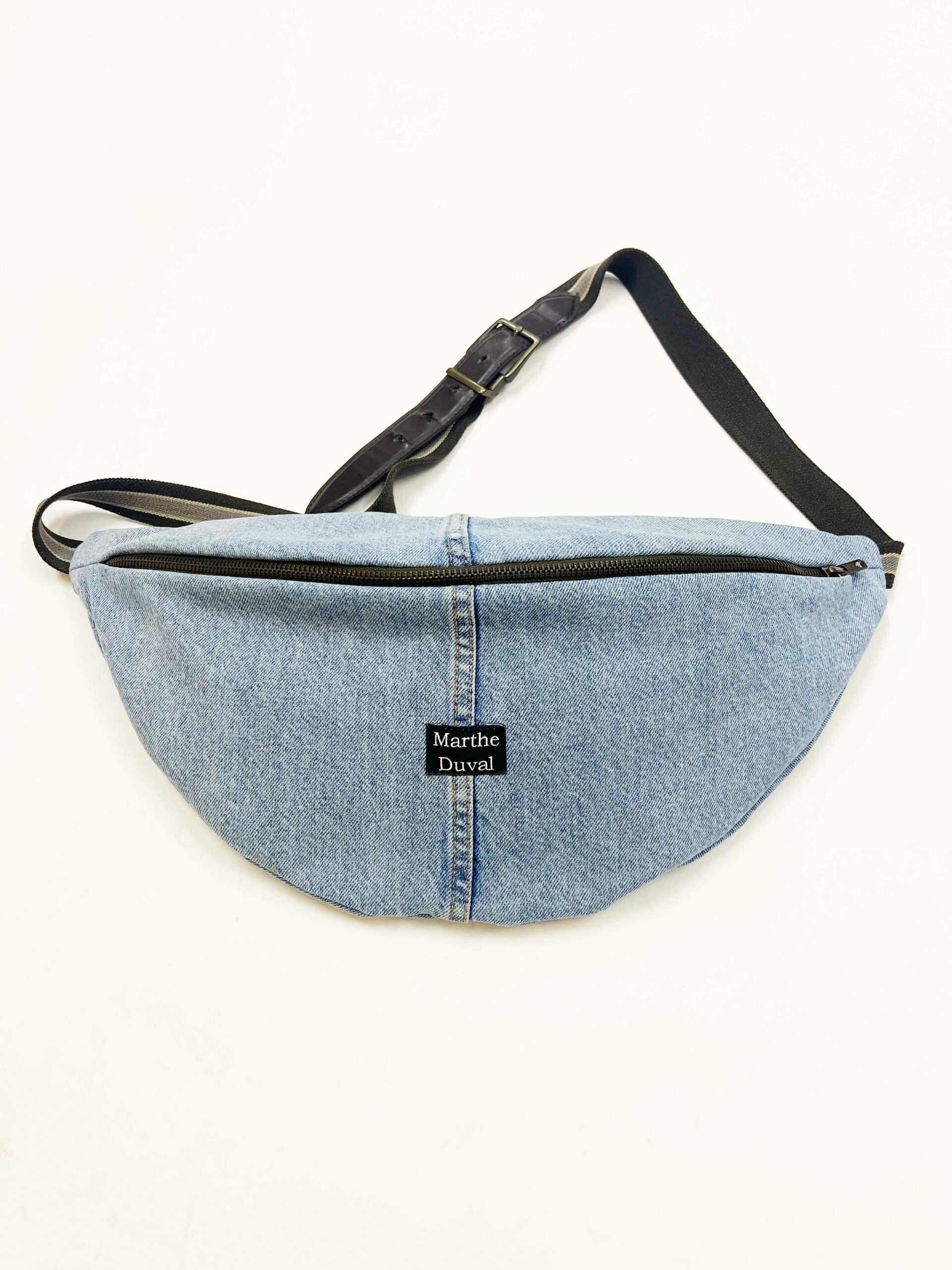 Banane XL en denim, entièrement doublée et 100% surcyclée.