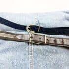 Les ceintures peuvent présenter des petites traces d’usure avec le temps, mais rien qui n’altère leur solidité.