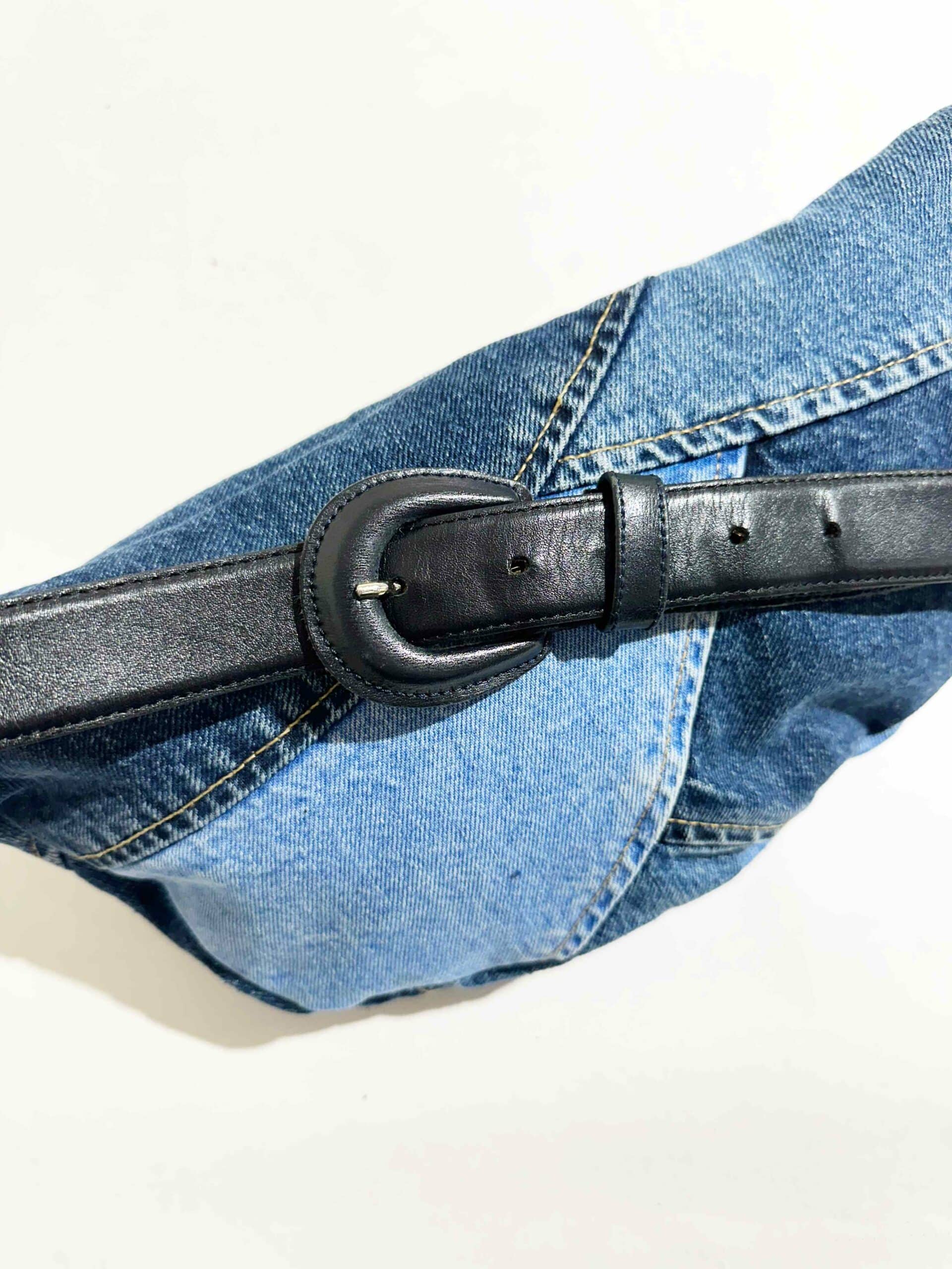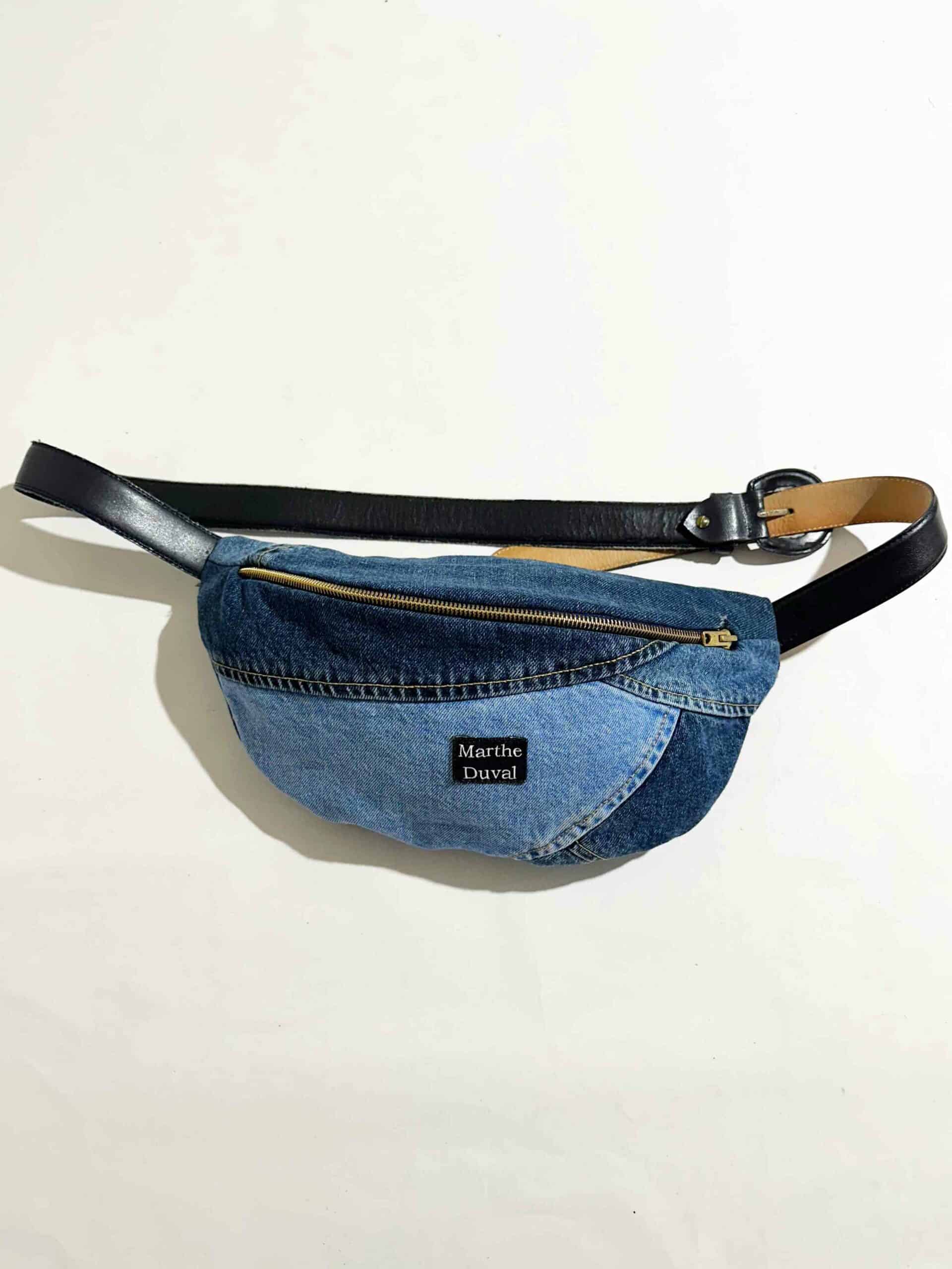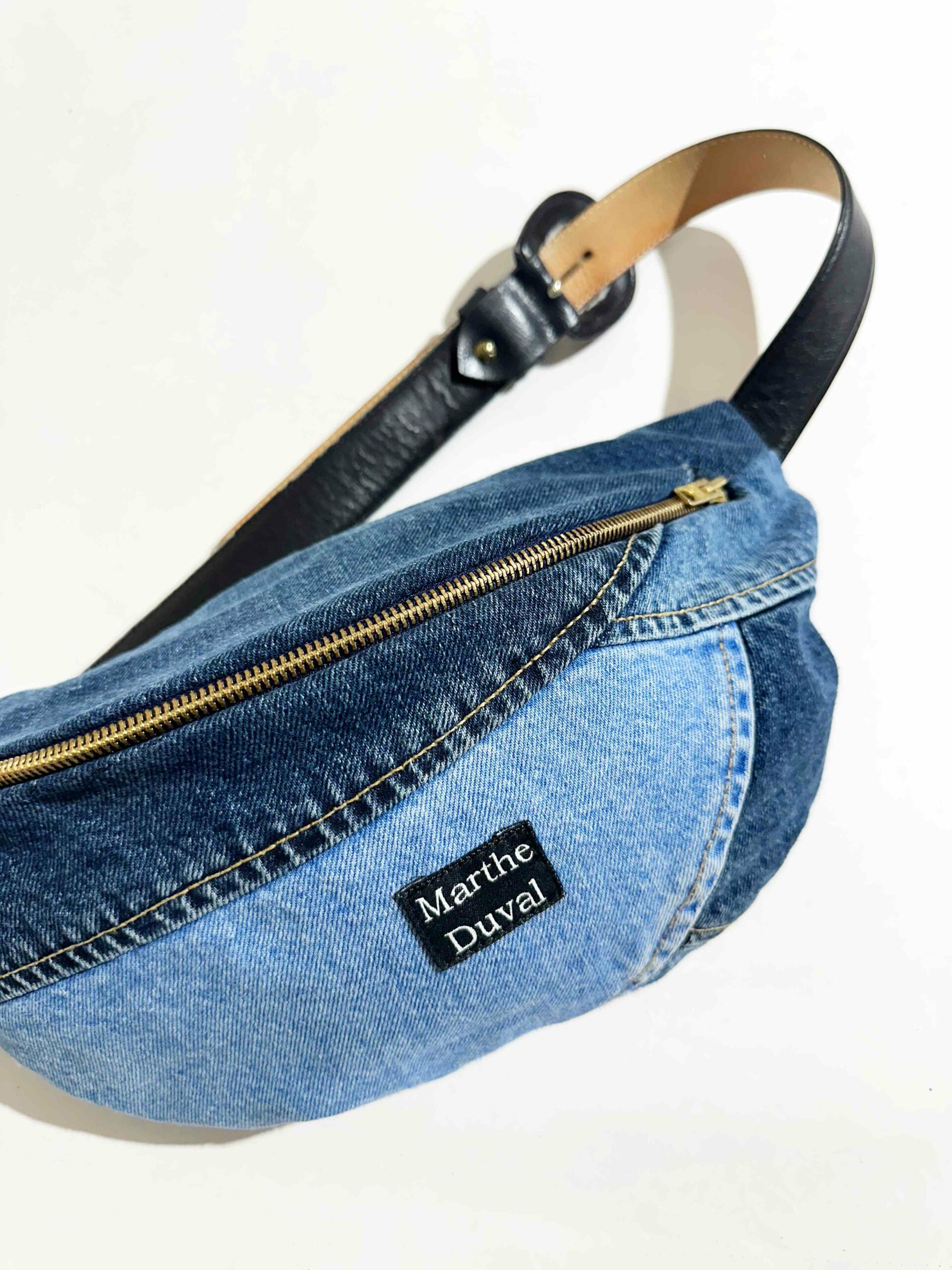 Banane XL en patchwork de denim, entièrement doublée et 100% surcyclée.