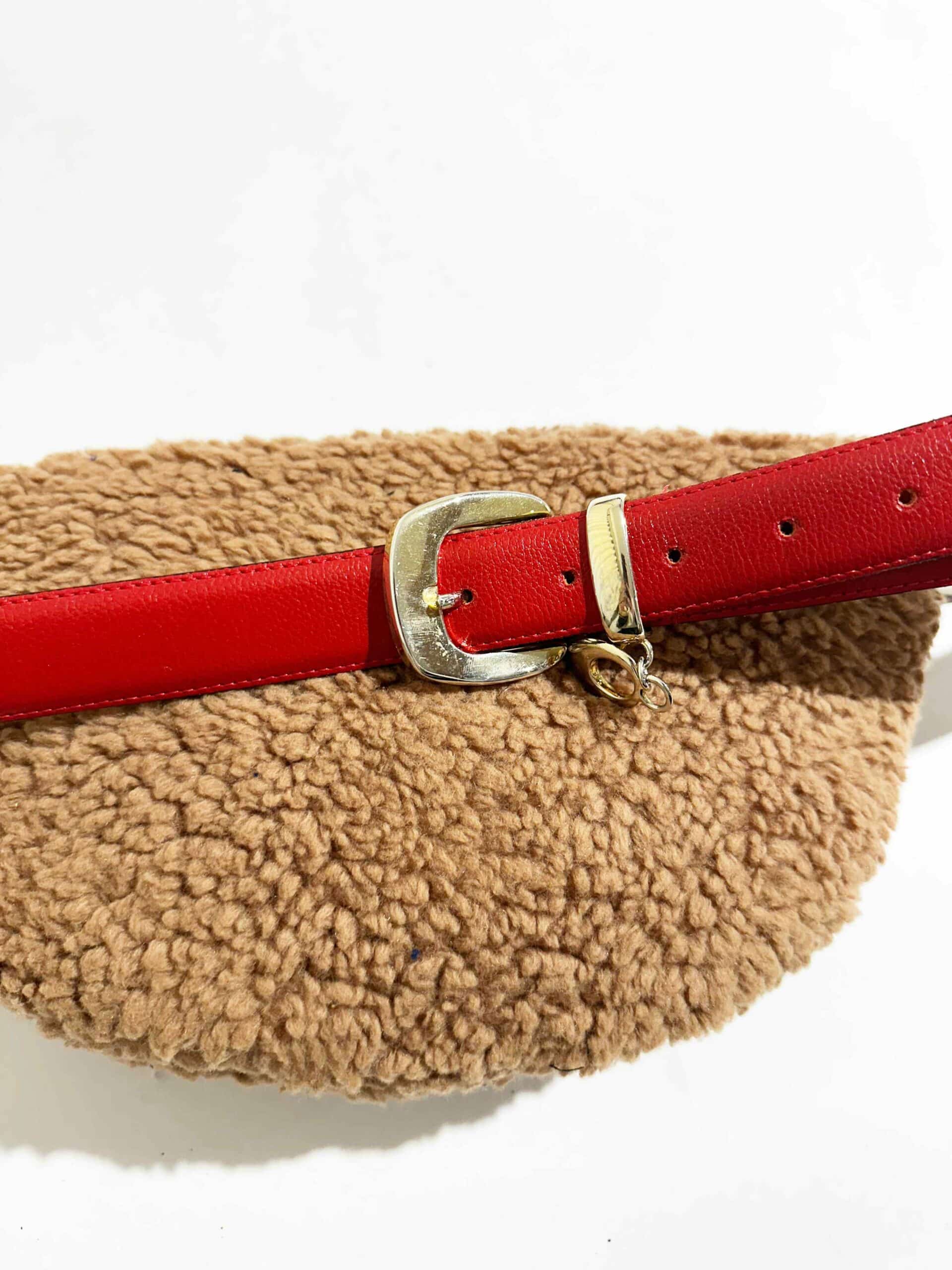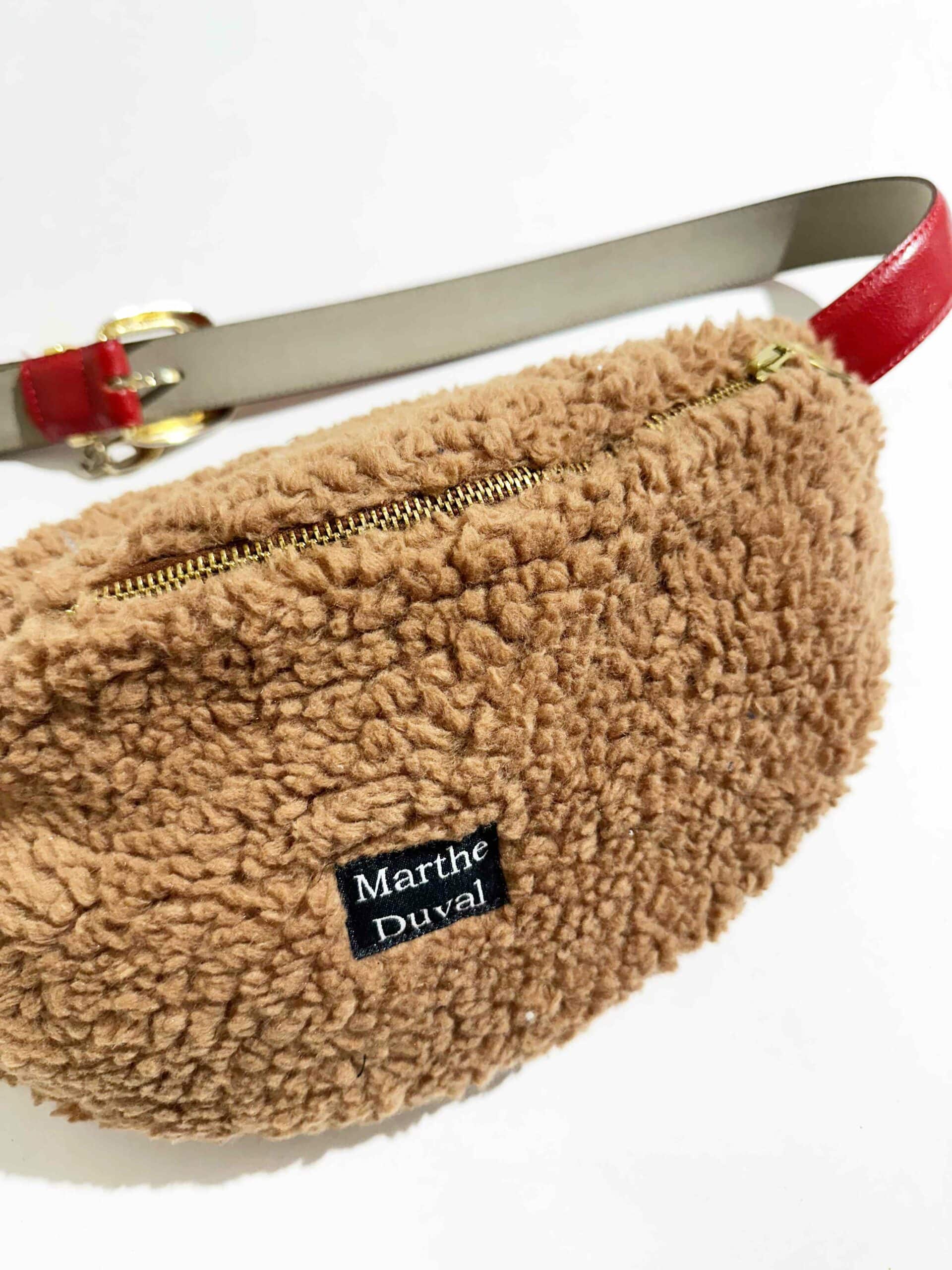 Banane XL en tissu sherpa camel, entièrement doublée et 100% surcyclée.