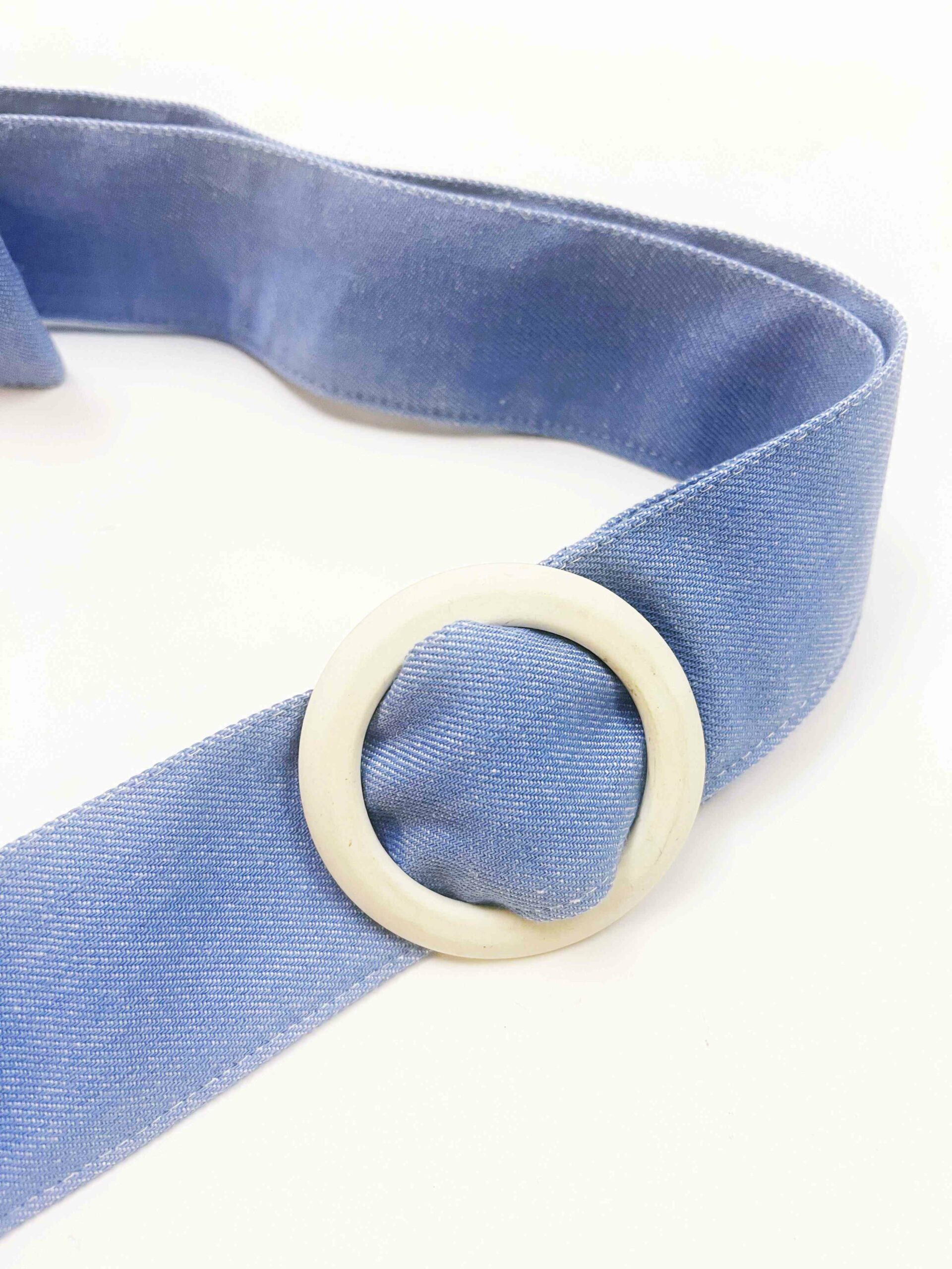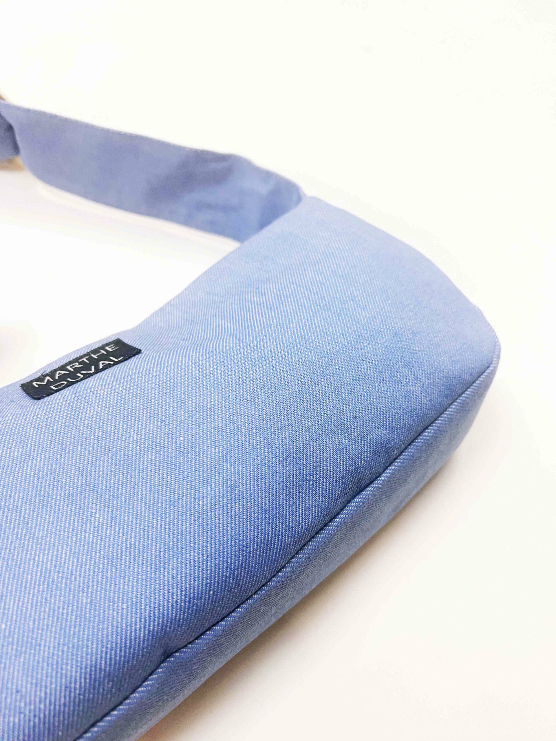 Sac baguette en toile baby blue, avec anse réglable et entièrement doublé.