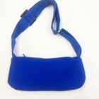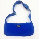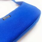 Sac baguette en sergé bleu, avec anse réglable et entièrement doublé.