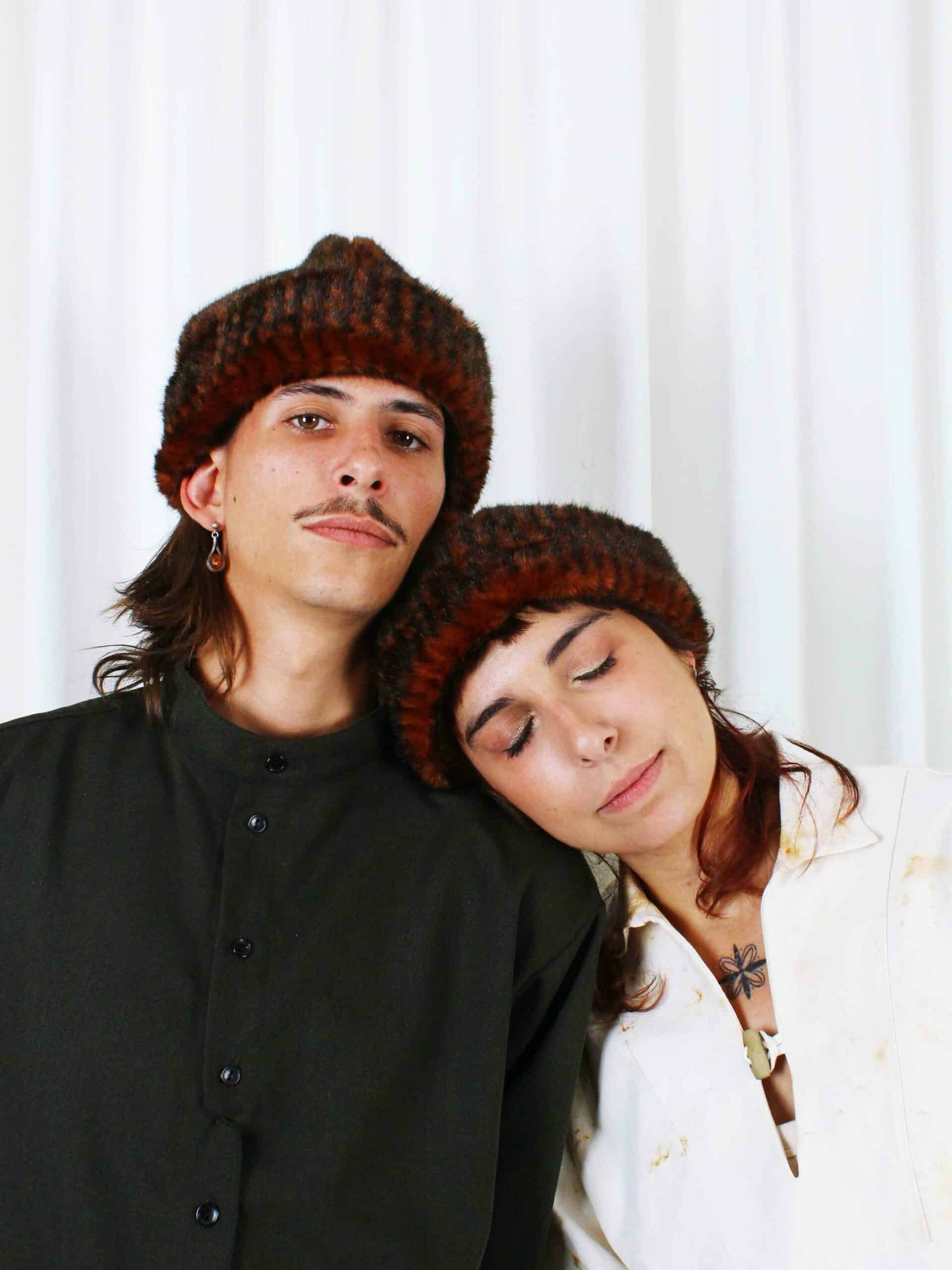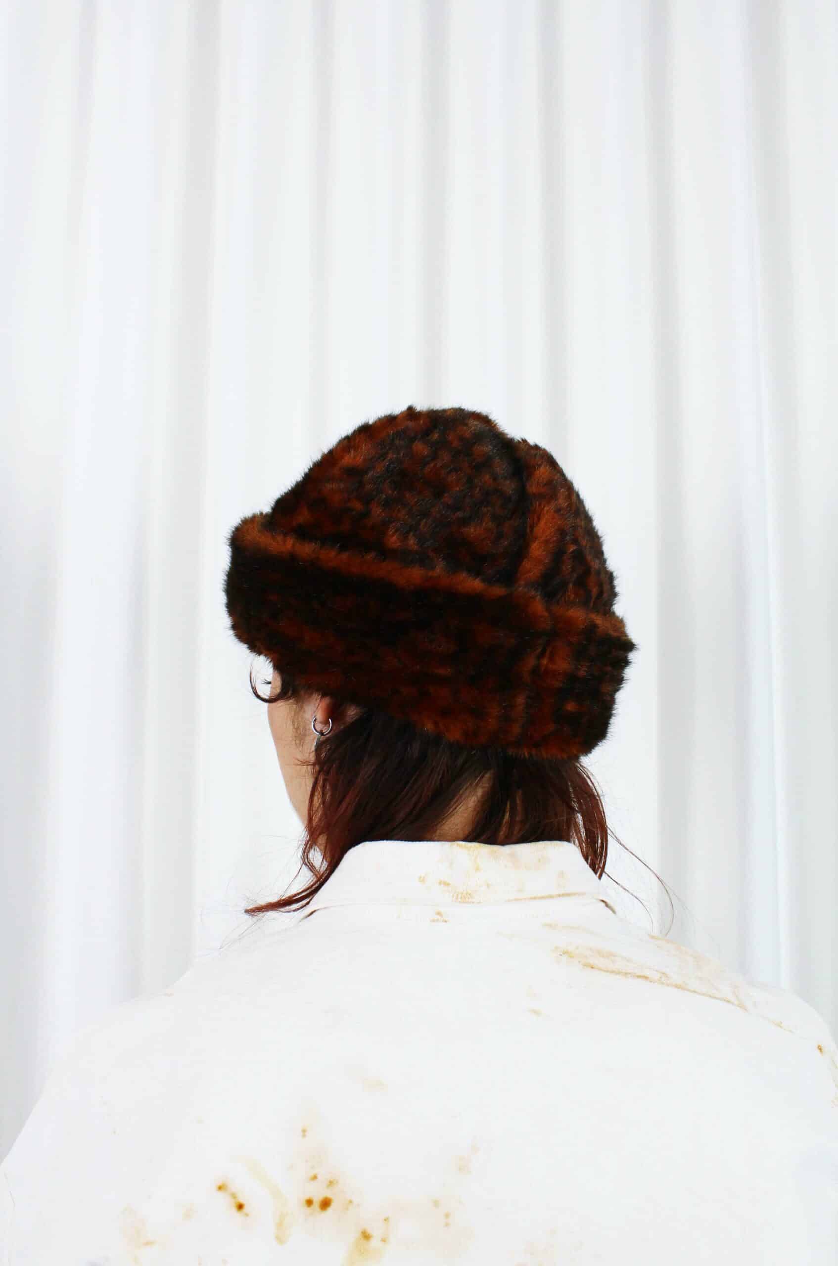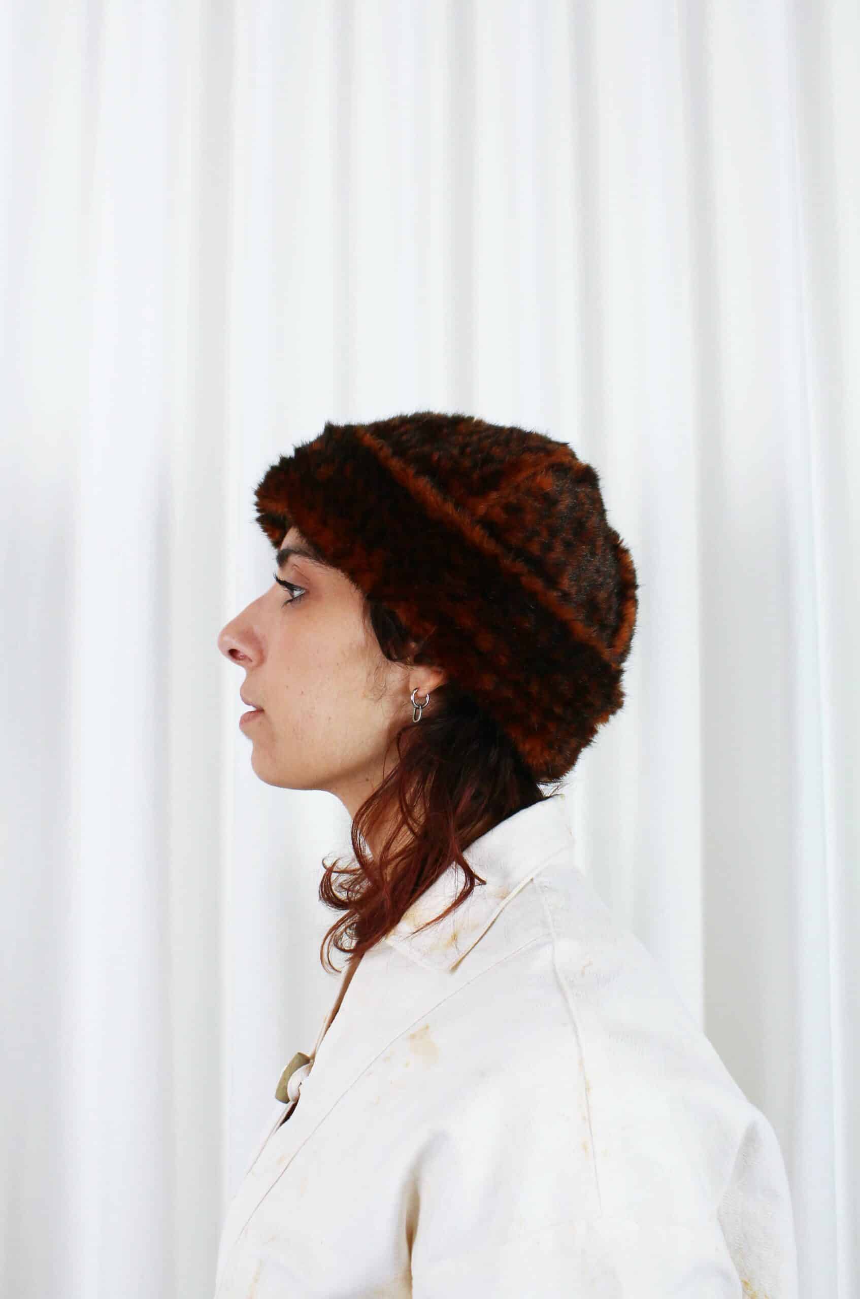 Toque en fourrure synthétique, entièrement doublée et 100% surcyclée.