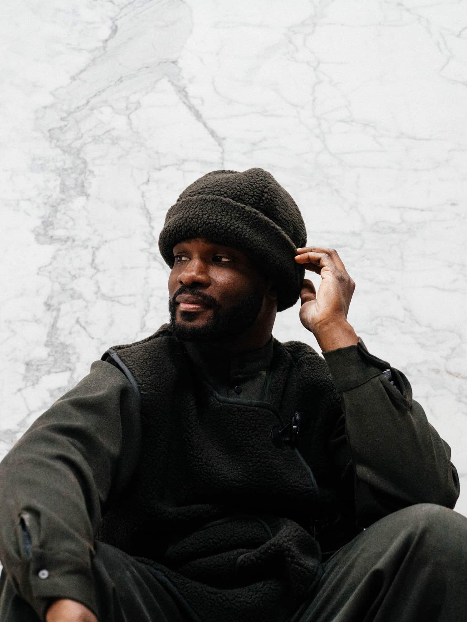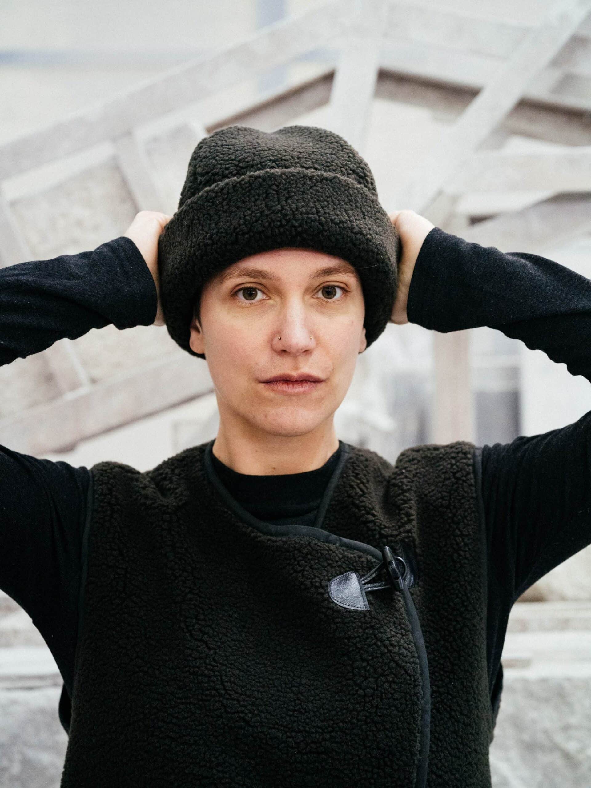 Toque en Sherpa, entièrement doublée avec des foulards vintage et 100% surcyclée.